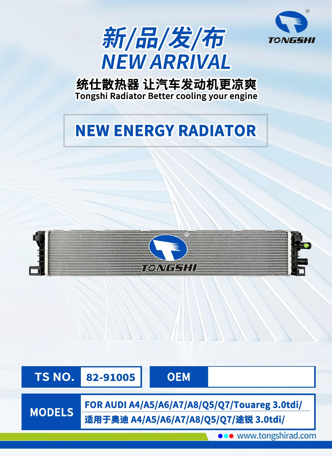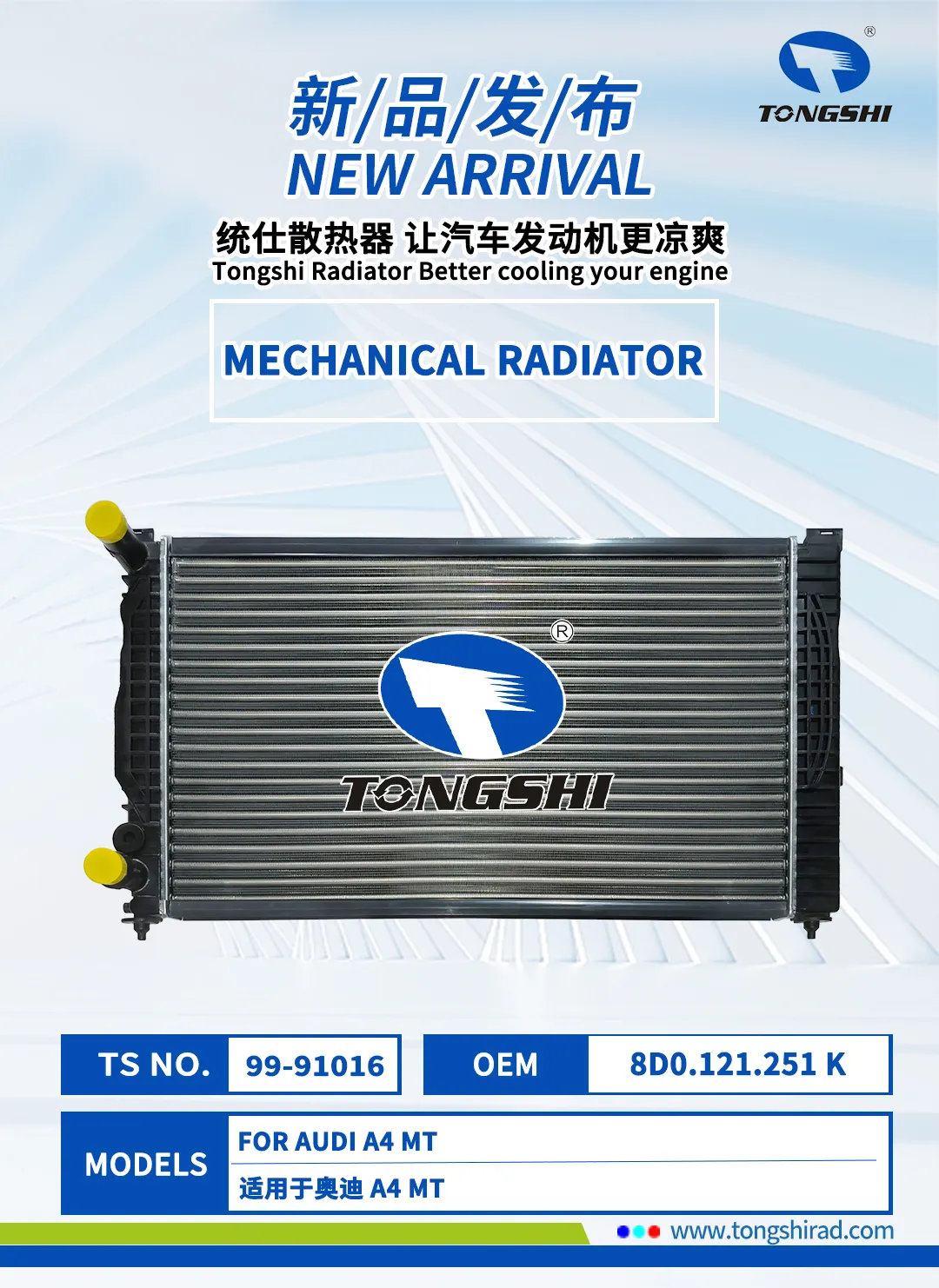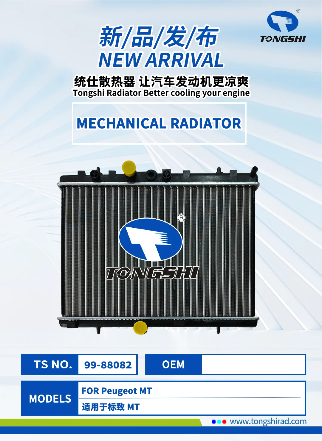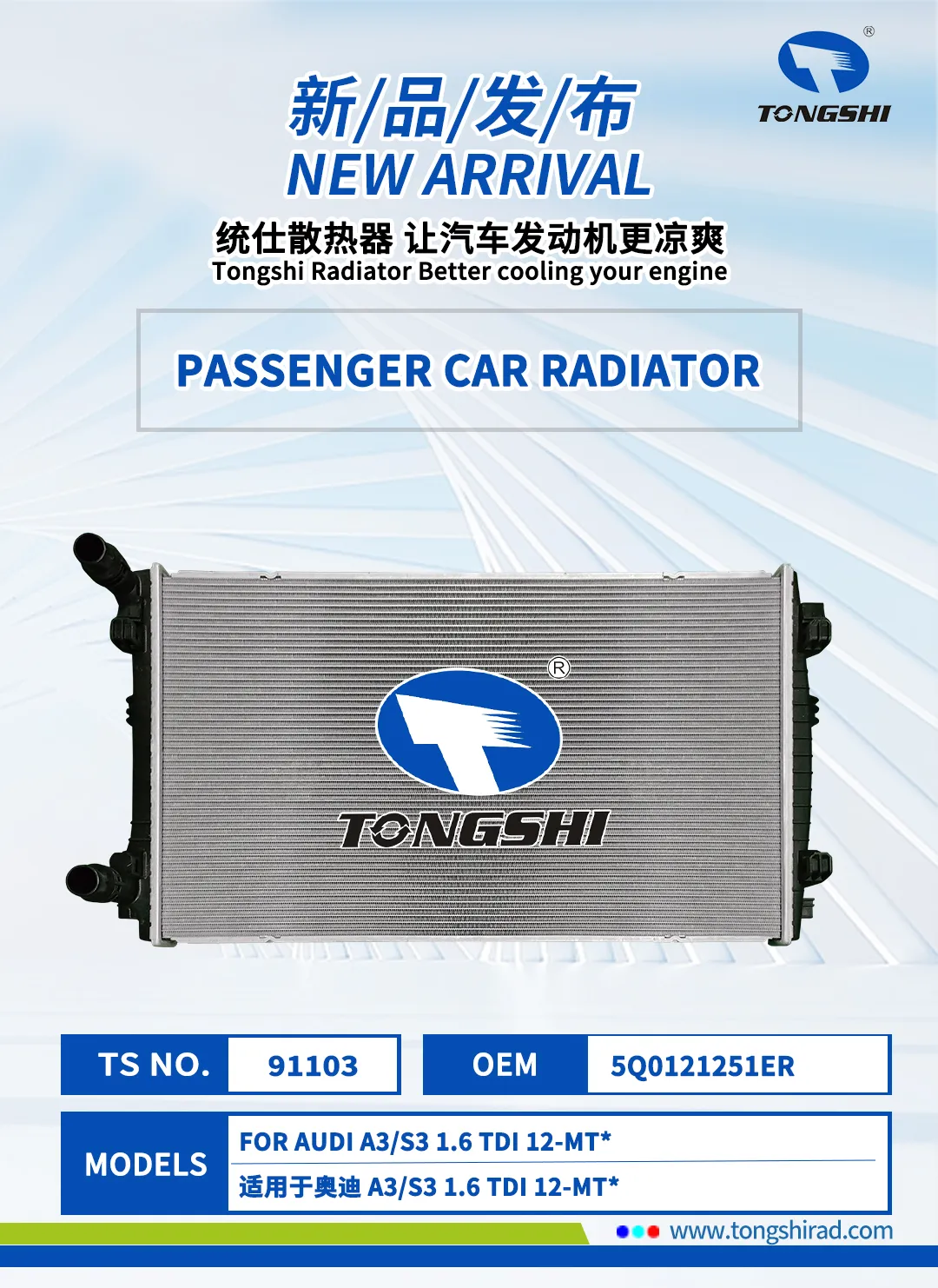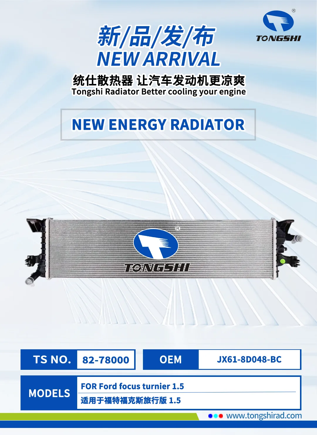 The New Year brings new beginnings, and components take on a fresh look! In January 2026, Xin Tongshi Group officially launch newly exclusive radiator products. These products are highly compatible with more vehicle models, and the customized cooling solutions are precisely implemented, effectively maintaining the engine at its optimal operating temperature, Which can be efficient and stable operation.We are committed to ensuring that every trip of its users is worry free, comfortable and smooth.